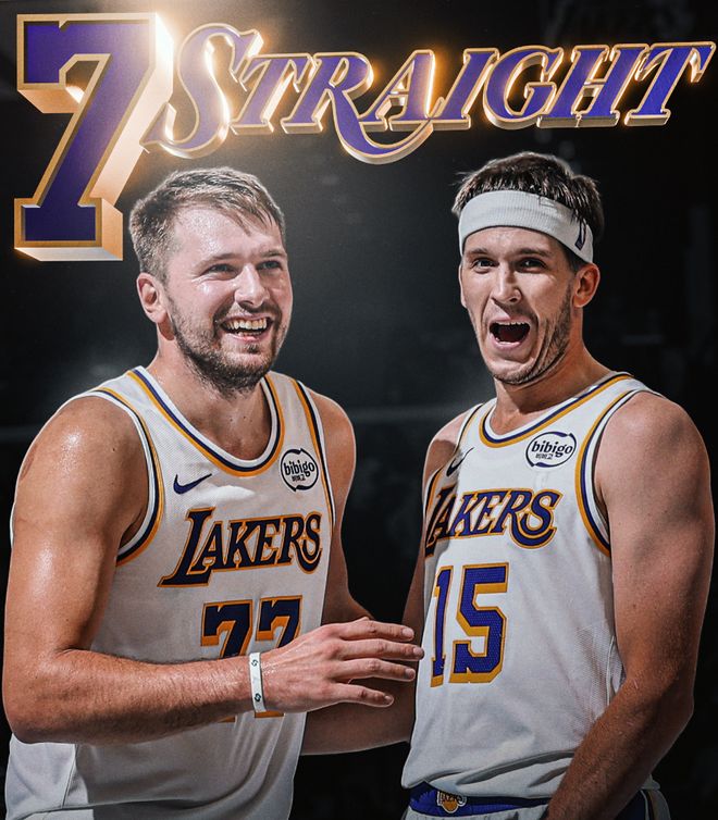 没有勒布朗-詹姆斯,东契奇、里夫斯联手依旧拿到大胜,这两人又都上20+,对阵鹈鹕与上一场对阵独行侠一样,东皇+里皇两人都上30+,湖人豪取七连胜稳居西部次席,里夫斯本赛季的成长过于喜人。