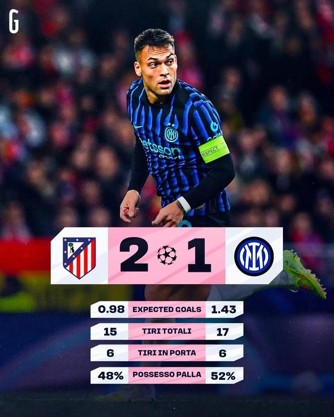 简单说一下与马竞这场比赛,其实国米的发挥并不算差,甚至在控球率、传球成功率、射门次数、预期进球等多项进攻数据上还是占优的一方,但最终却连1分都没拿到,这样的结果似乎很不公平,但竞技体育就是以结果论英雄,场面再好看却赢不了球没有任何意义,人们记住的只是最后的胜者而已!
