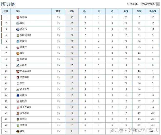 英超最新积分榜:阿森纳战平蓝军5分领跑,曼联客场逆转攀升第7!